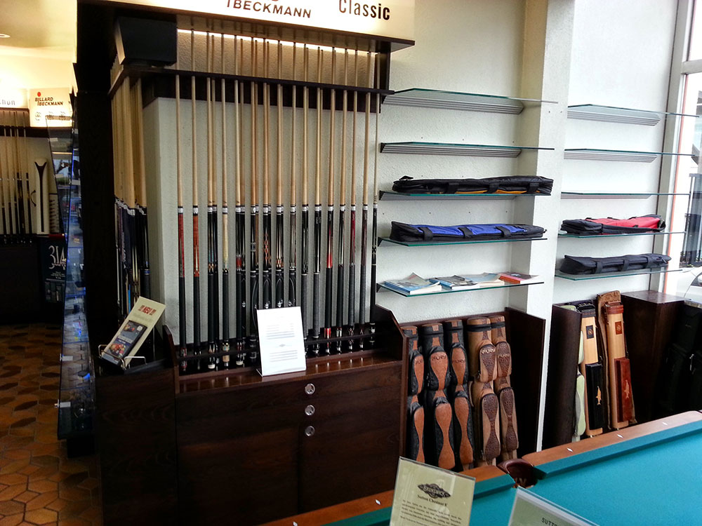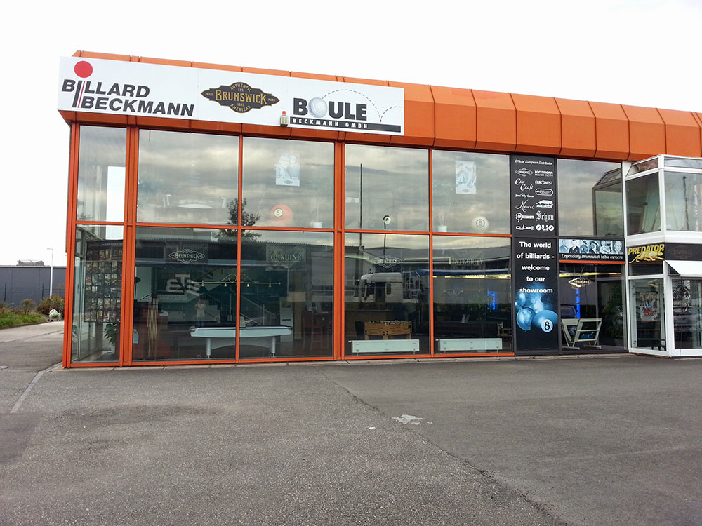 In den Geschäftsräumen mit 1.200 Quadratmetern Ausstellungs-, Büro- und Verkaufsfläche findet man alles, was das Billardherz begehrt. Ein umfangreiches Warensortiment und ein qualifizierter Service sind selbstverständlich. "Teamarbeit" heißt das Motto von Jürgen Beckmann. Beratung, Verkauf, Auftragsabwicklung und Kundenbetreuung werden von Haus aus koordiniert. Alles das macht ihn stark: sein Erfolg, sein Durchhaltevermögen, seine Mitarbeiter, die voll hinter ihm stehen.