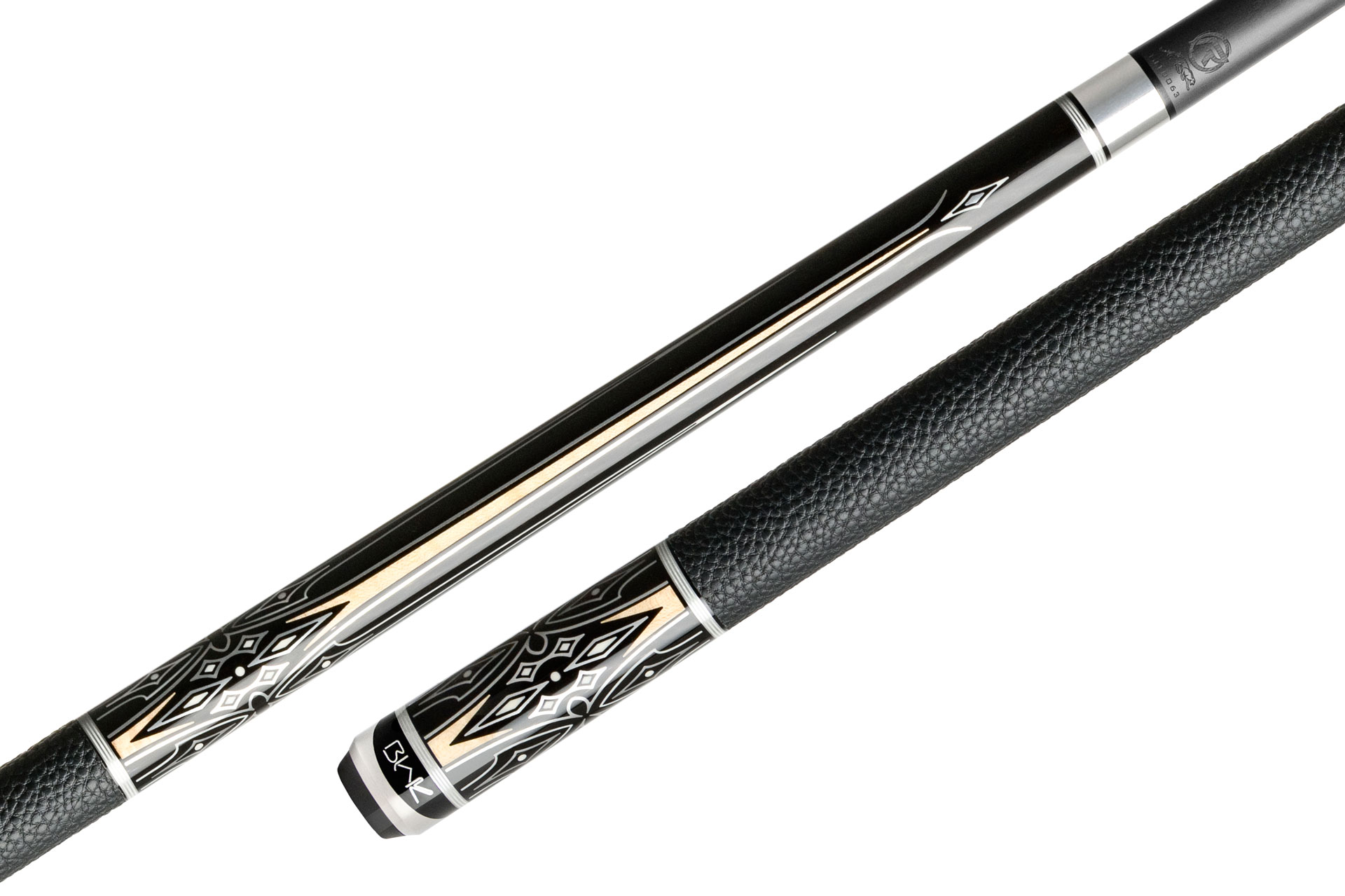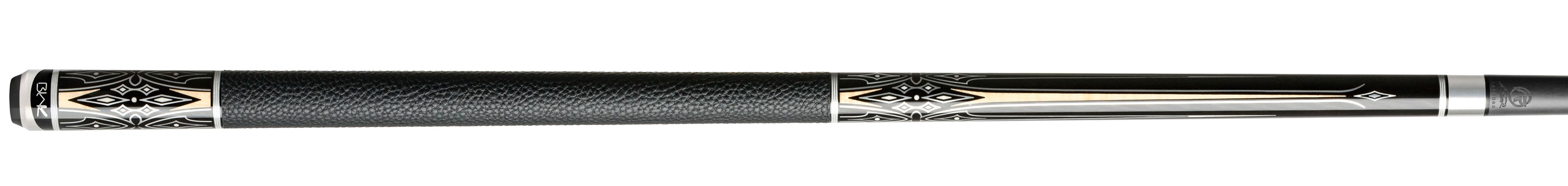 Jedes Blak5 5 Billardqueue verfügt über längere, aufwendigere Einlegearbeiten, deren Herstellung mehr Zeit, Geschick und Präzision erfordert. Echtes exotisches Ebenholz – ein seltenes und kostbares Holz, das immer schwieriger zu beschaffen ist – dient als Grundlage und bildet einen wunderschönen Kontrast zu feinem Curly Maple(Riegelahorn), glänzenden Legierungen und Details aus Ivorine.